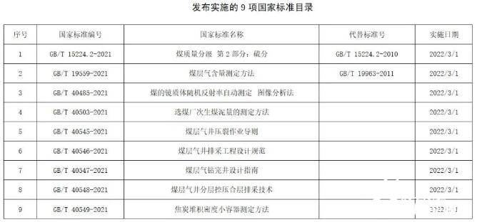 9項(xiàng)煤炭領(lǐng)域國家標(biāo)準(zhǔn)正式發(fā)布