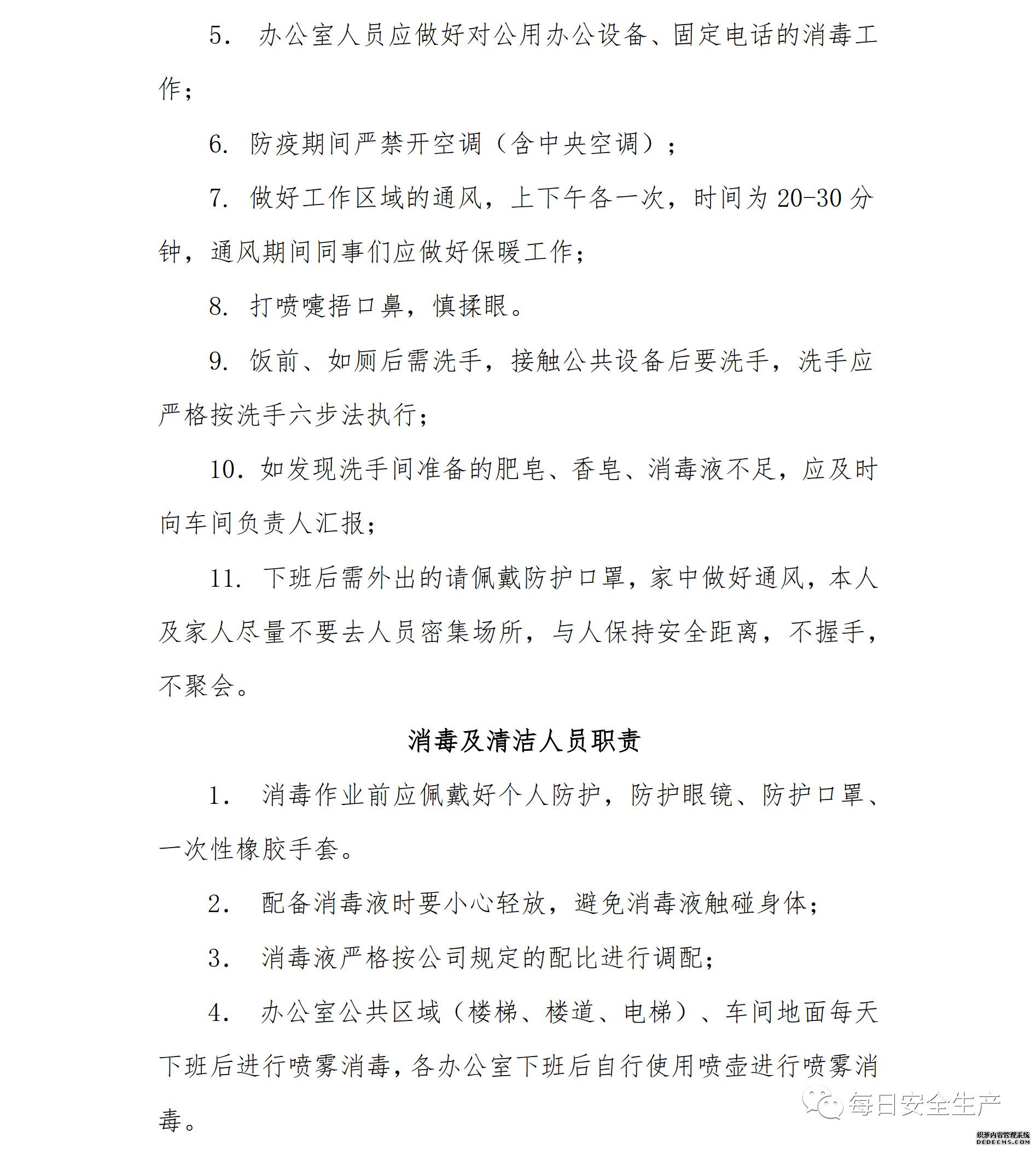 ② 堅(jiān)持每日上班前、下班后消殺防疫(人員集中的重點(diǎn)區(qū)域應(yīng)多次消殺);