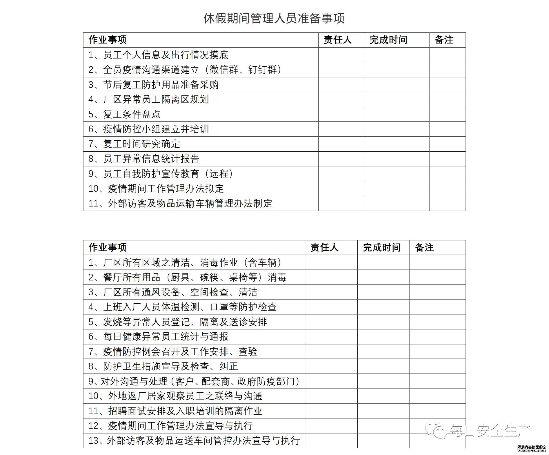 ③ 必須排查每名職工假期期間流動(dòng)信息情況;