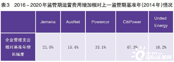 加強(qiáng)輸電設(shè)備防山火管理,也增加了各配電公司的運(yùn)營(yíng)費(fèi)用支出。維多利亞州5家配電公司2016~2020年監(jiān)管期運(yùn)營(yíng)費(fèi)用增加相對(duì)上一監(jiān)管期基準(zhǔn)年(2014年)情況見(jiàn)表3。增加原因除了勞動(dòng)力成本的上漲外,主要就是履行防山火義務(wù)增加的運(yùn)營(yíng)費(fèi)用。