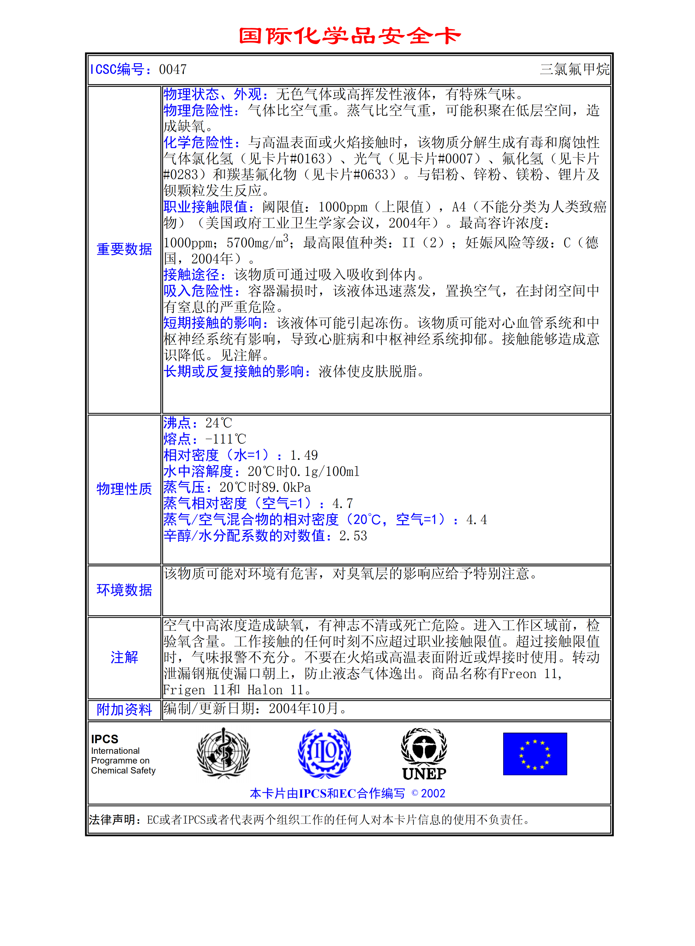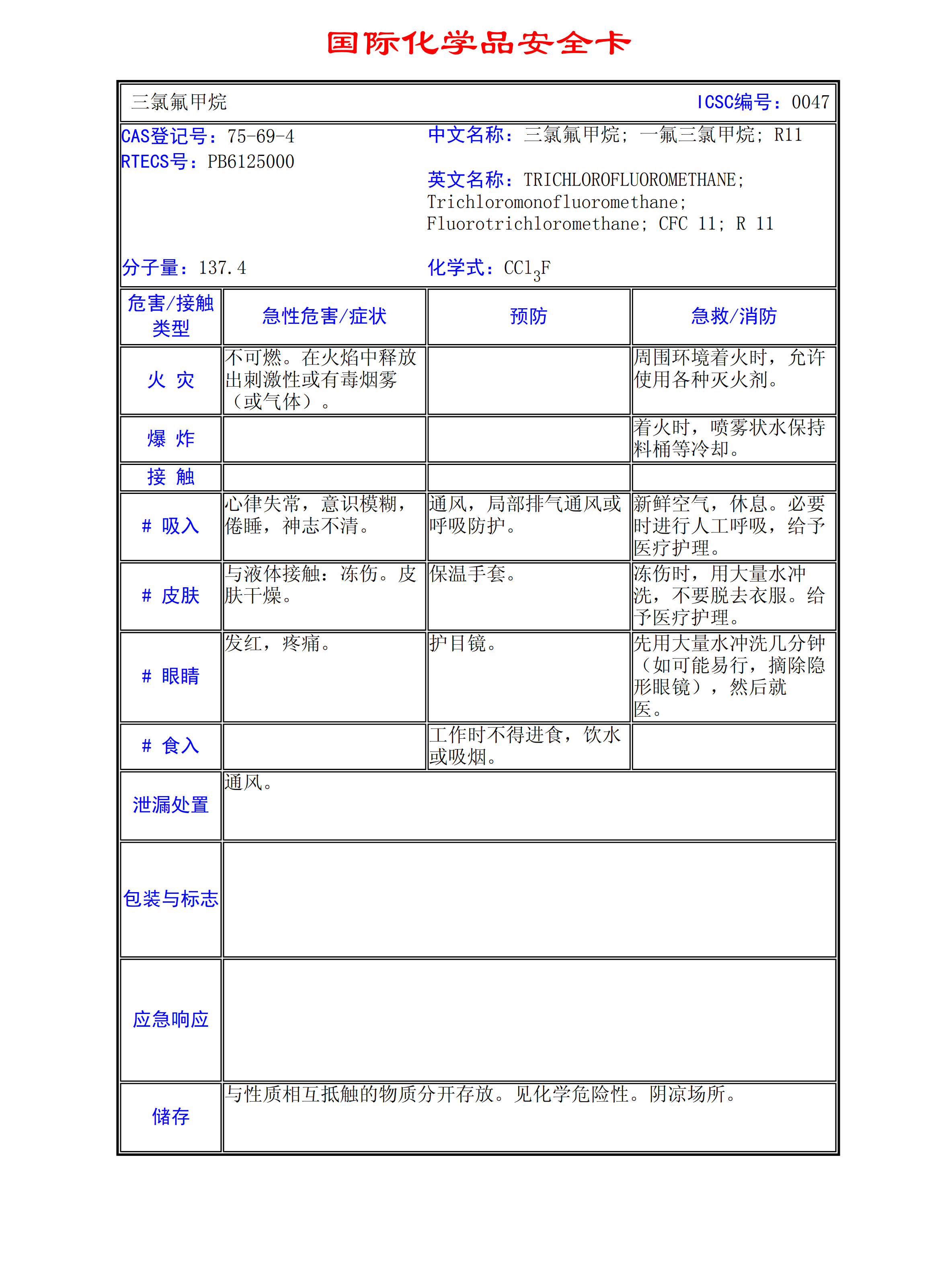 三氯氟甲烷MSDS