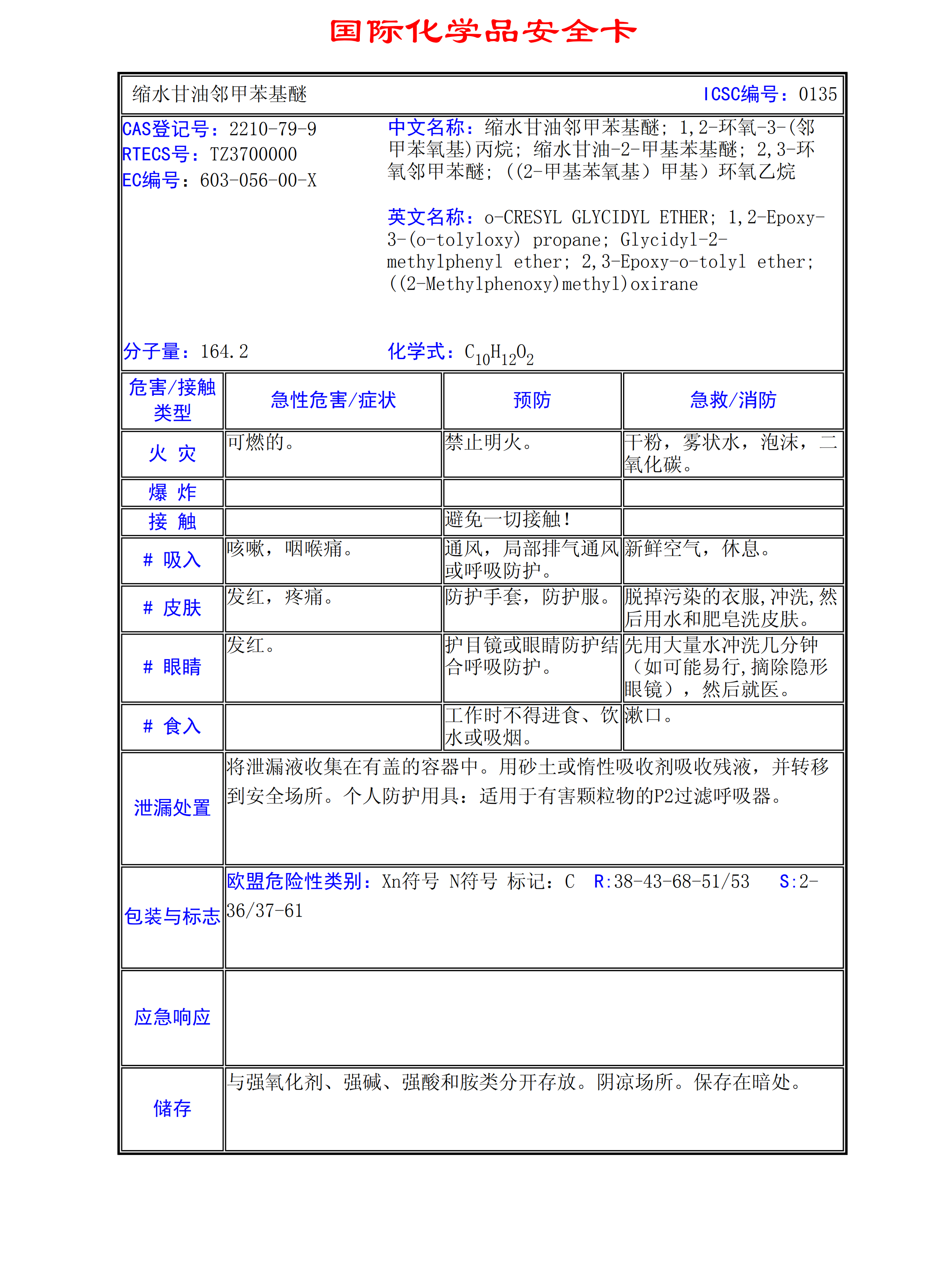 縮水甘油鄰甲苯基醚MSDS