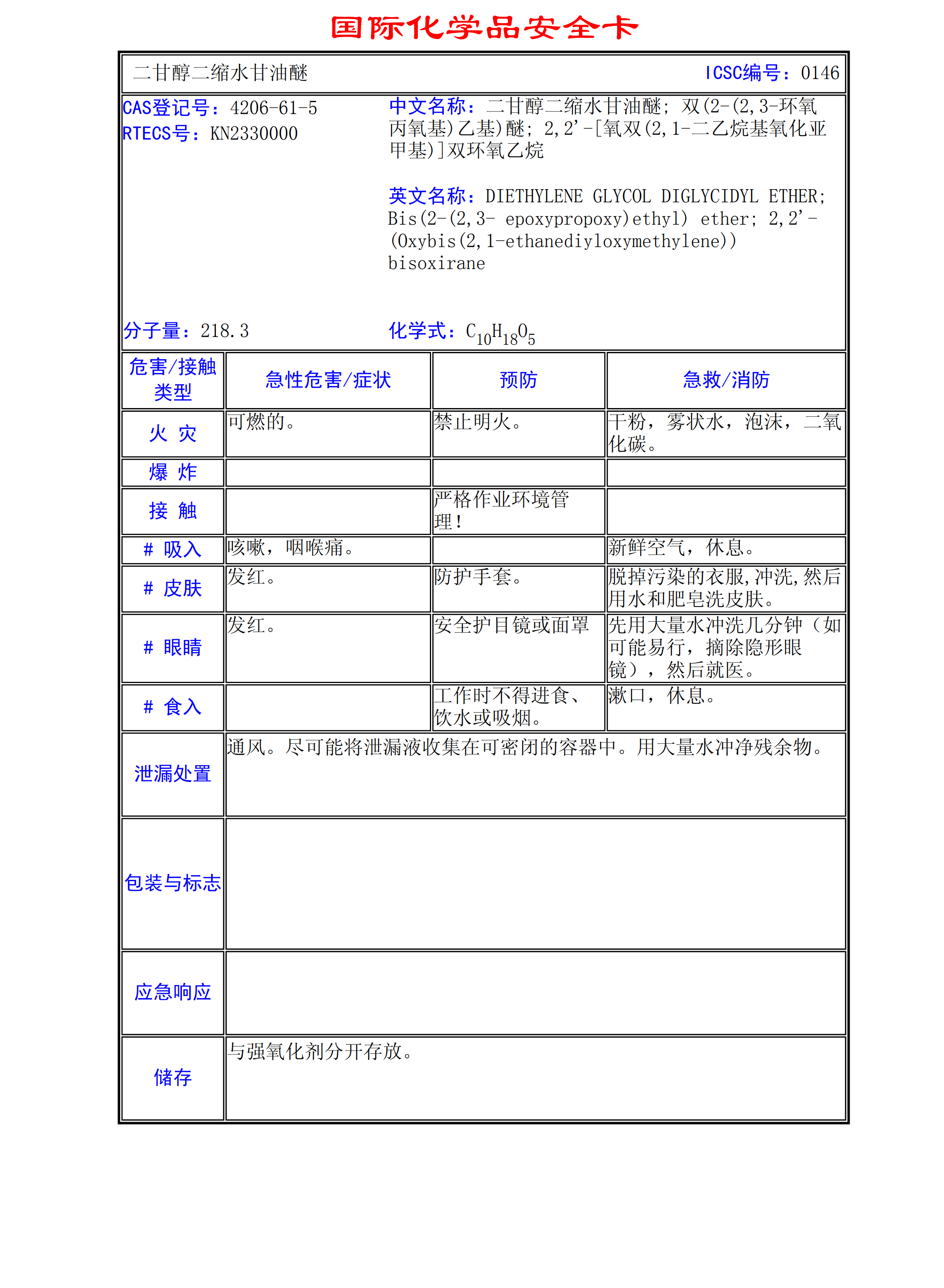 二甘醇二縮水甘油醚MSDS