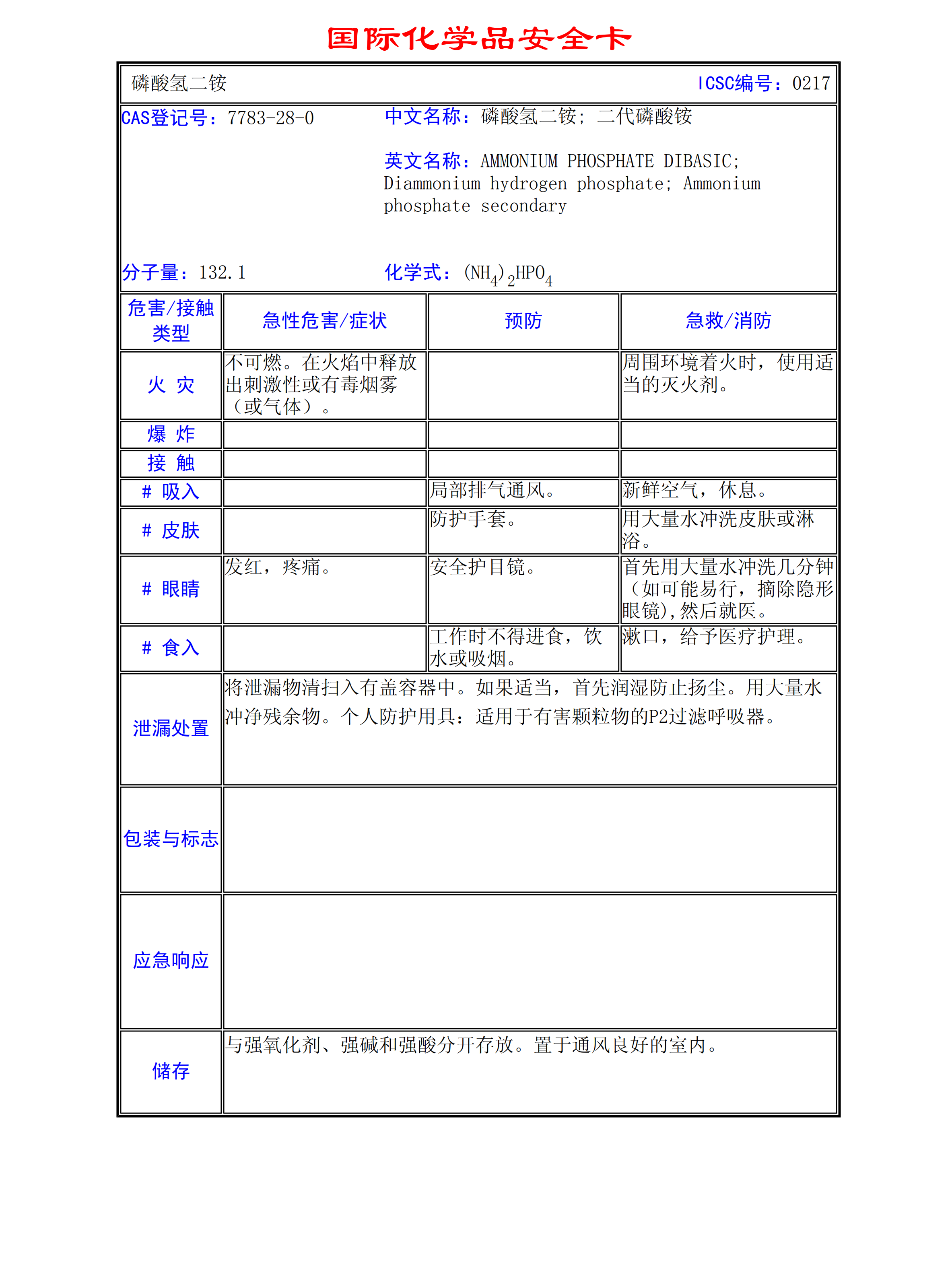 磷酸氫二胺MSDS