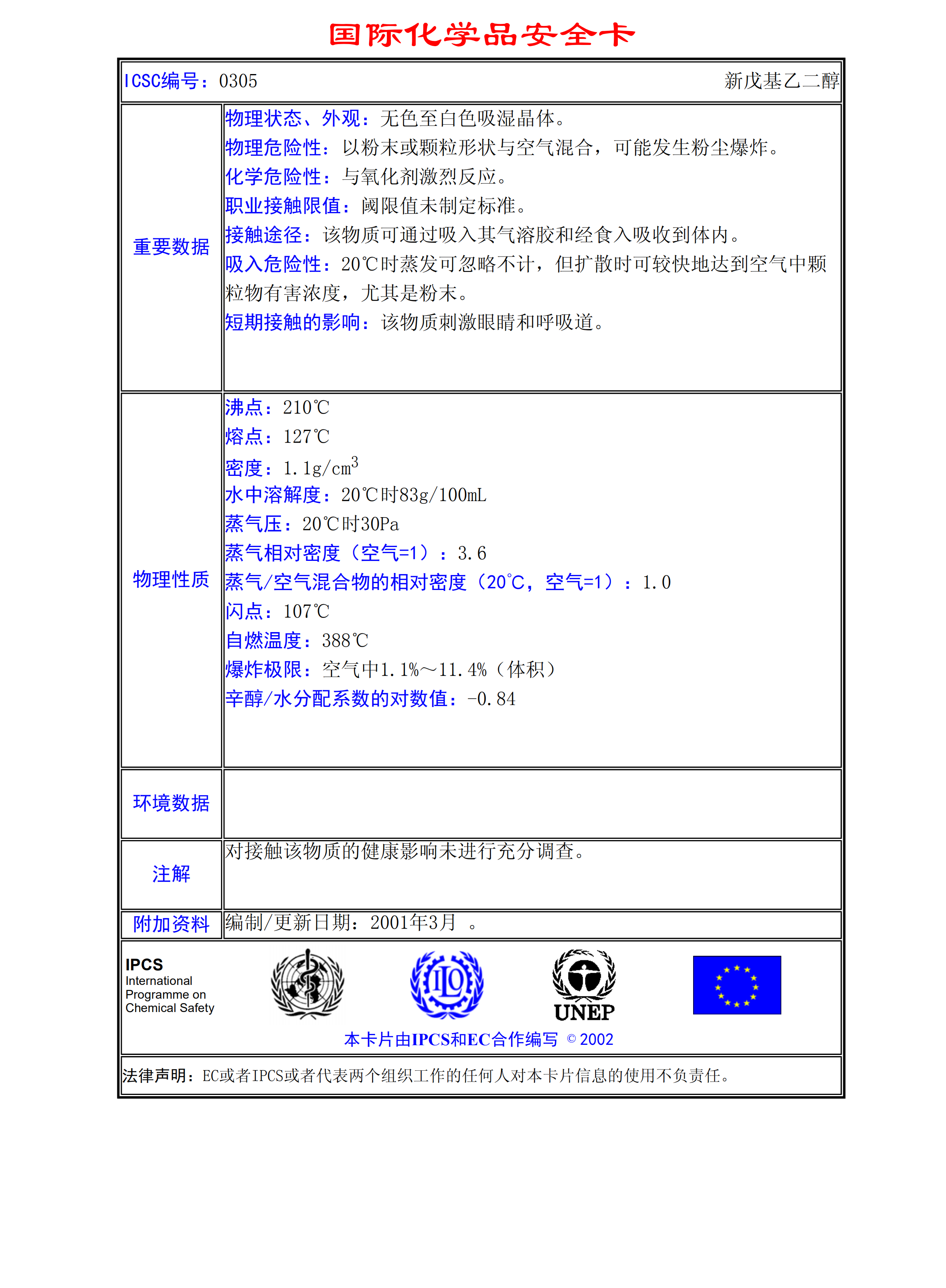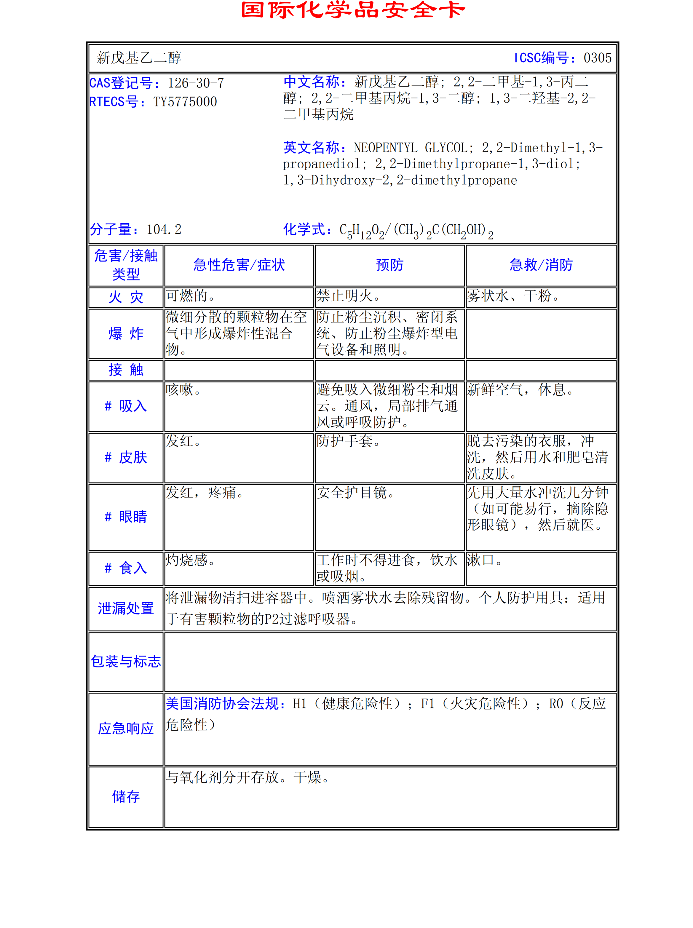 新戊基乙二醇MSDS