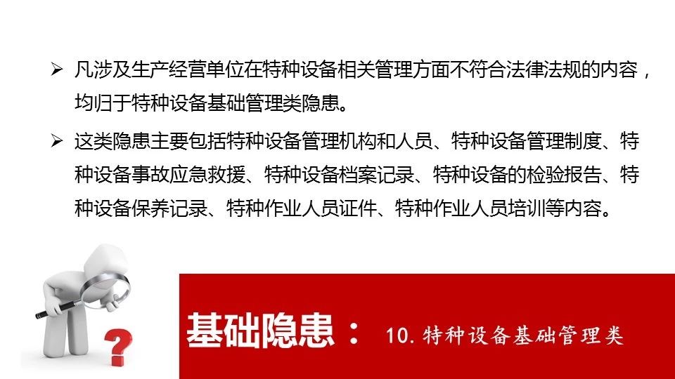 18 | 危險物品的容器、運輸工具,以及涉及人身安全、危險性較大的海洋石油開采特種設(shè)備和礦山井下特種設(shè)備未經(jīng)具有專業(yè)資質(zhì)的機構(gòu)檢測、檢驗合格,取得安全使用證或者安全標(biāo)志,投入使用的 |