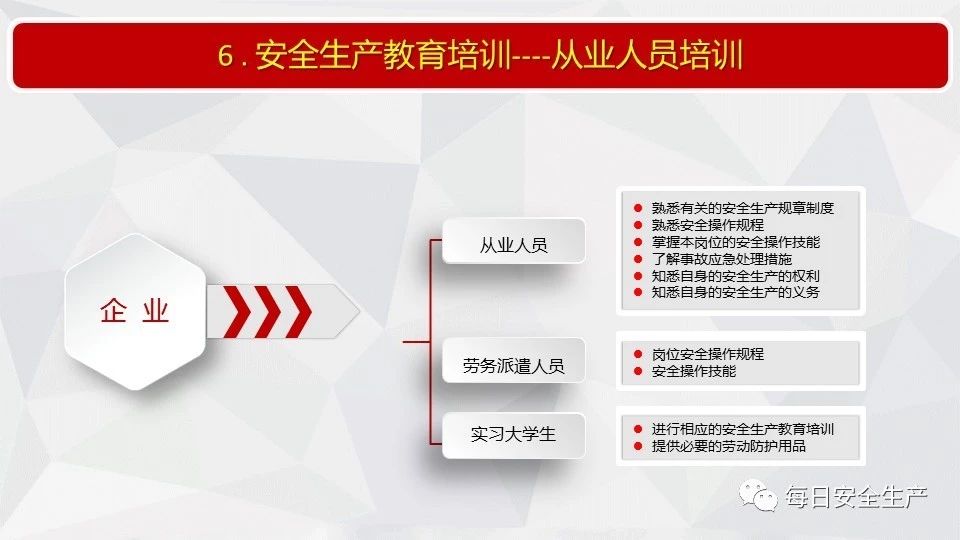 5 | 未按照規(guī)定對從業(yè)人員、被派遣勞動者、實習(xí)學(xué)生進行安全生產(chǎn)教育和培訓(xùn),或者未按照規(guī)定如實告知有關(guān)的安全生產(chǎn)事項的 |