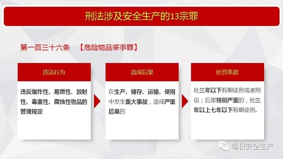 21 | 生產(chǎn)、經(jīng)營、運輸、儲存、使用危險物品或者處置廢棄危險物品,未建立專門安全管理制度、未采取可靠的安全措施的 |