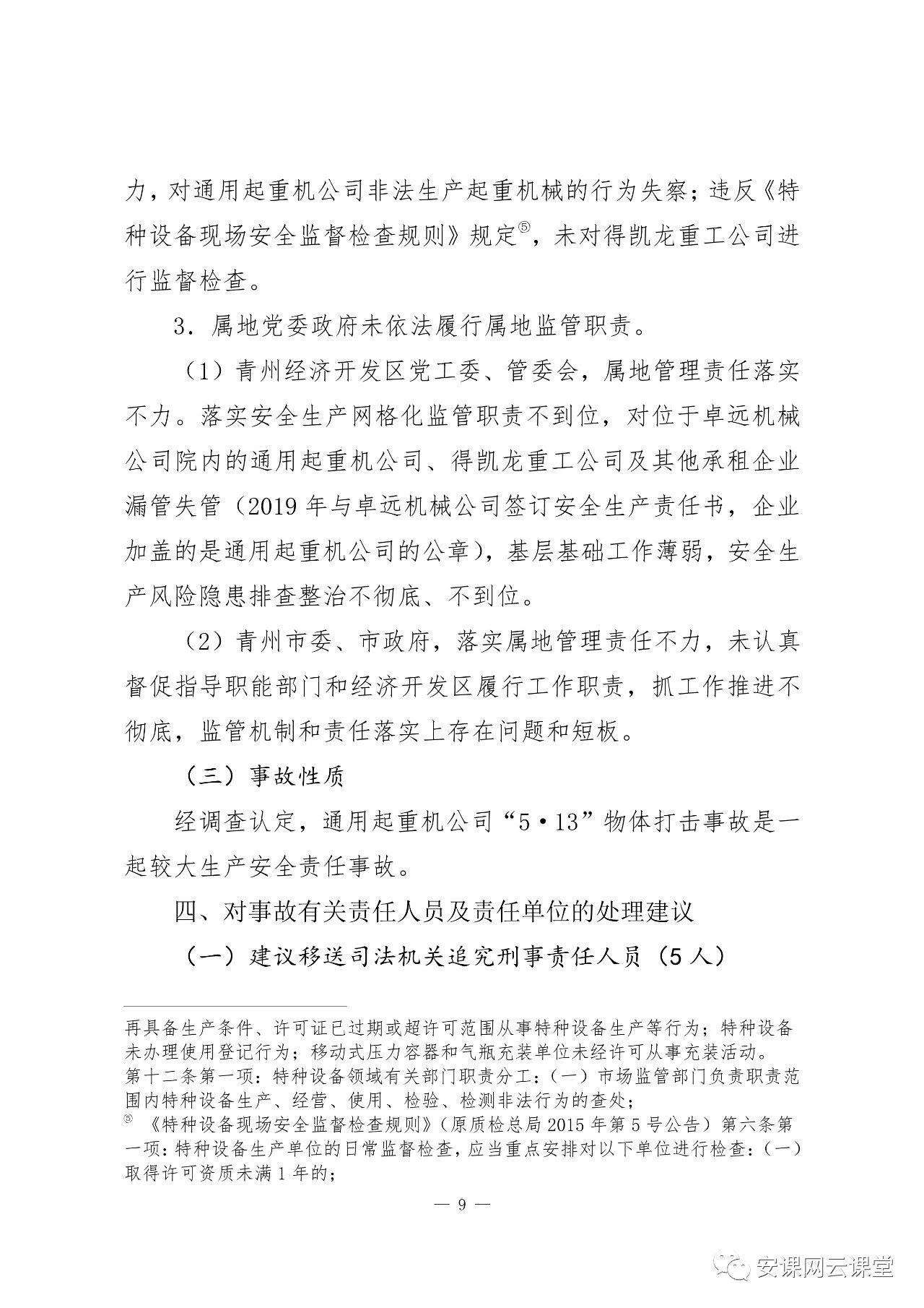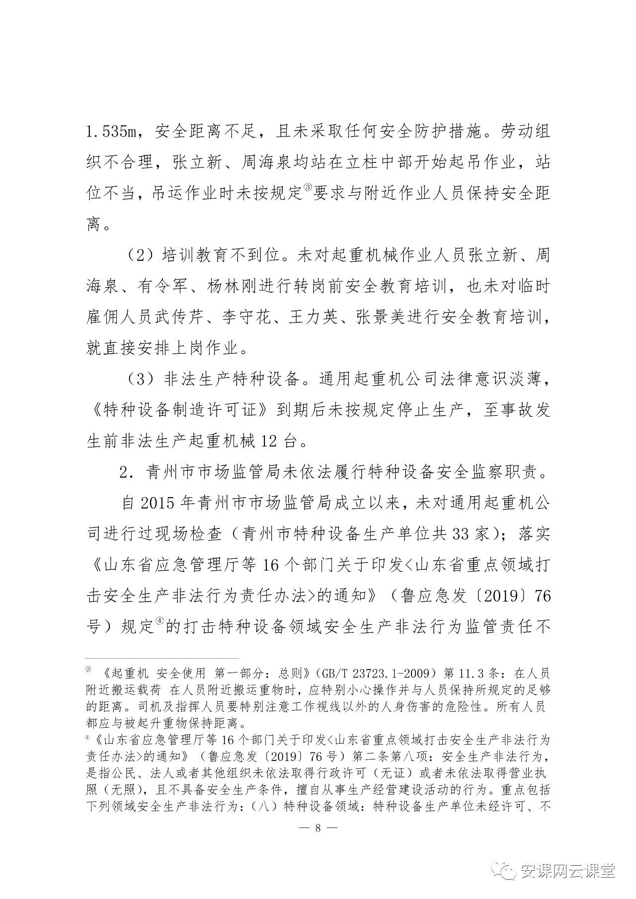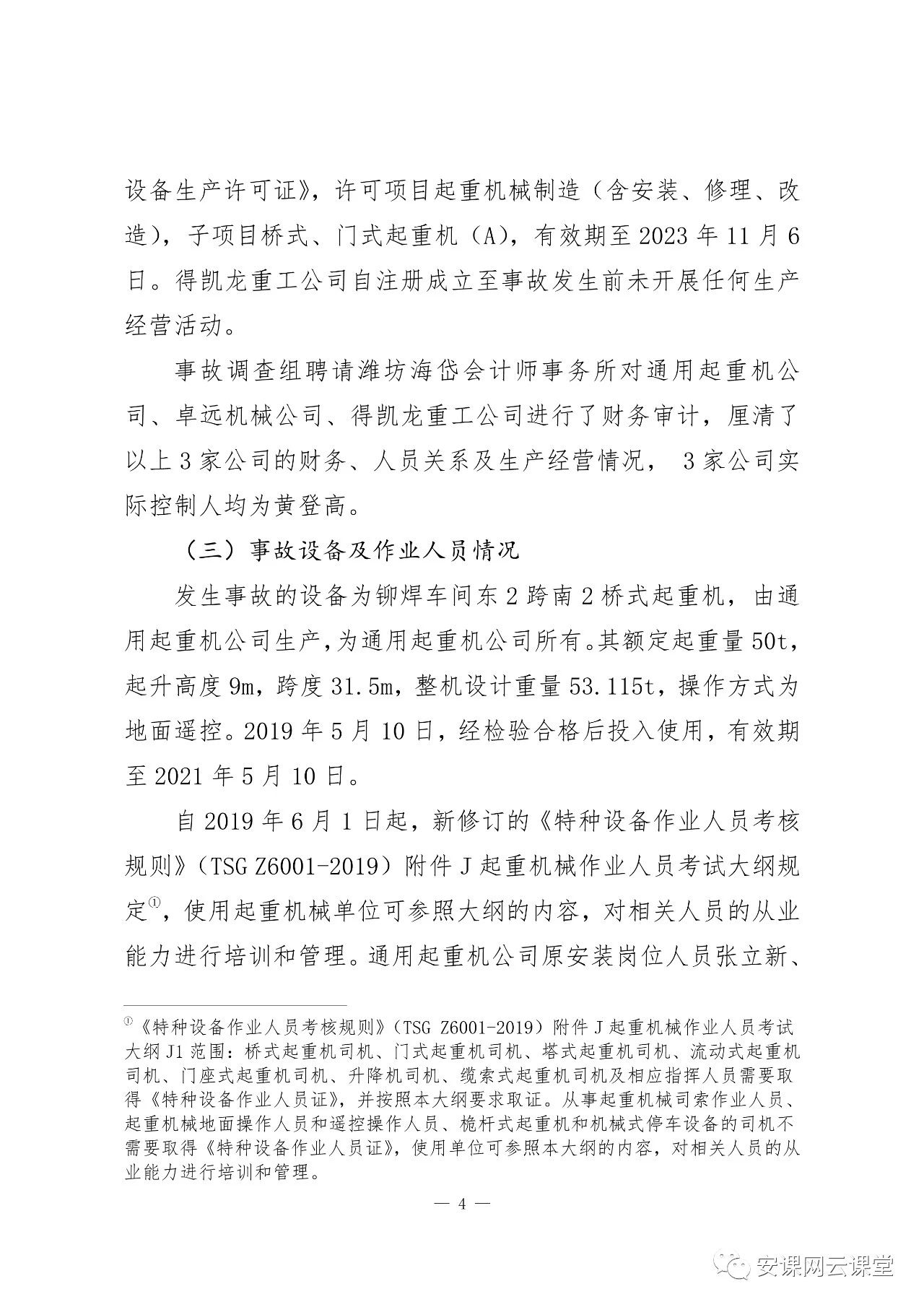 曹國偉,中共黨員,通用起重機(jī)公司副總經(jīng)理,對生產(chǎn)過程中存在的安全隱患督促指導(dǎo)整改不力,違章指揮未經(jīng)安全教育培訓(xùn)的工人上崗作業(yè),對事故的發(fā)生負(fù)有主要責(zé)任。