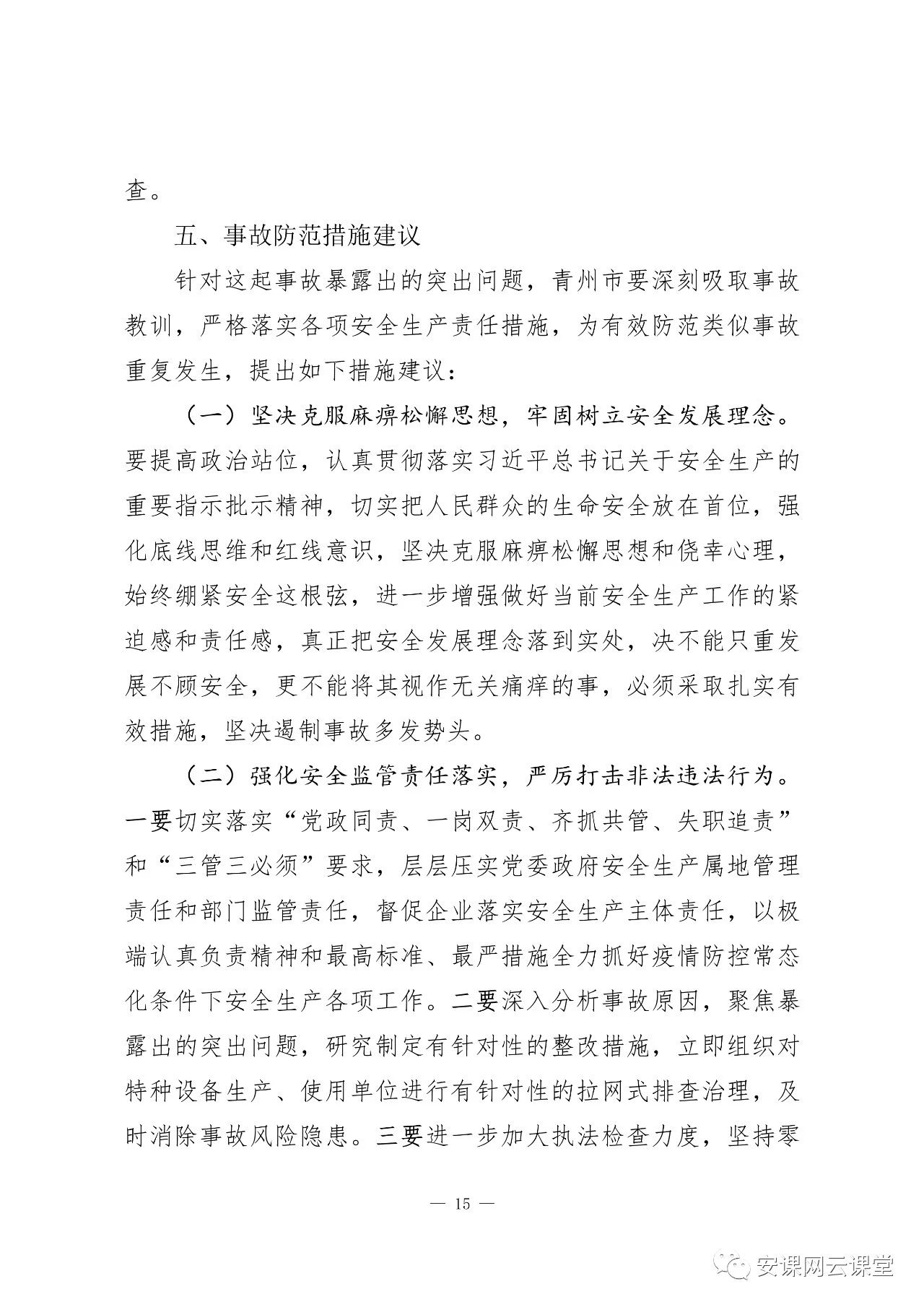2020年5 月16 日,被青州市公安局采取監(jiān)視居住強(qiáng)制措施。涉嫌構(gòu)成重大責(zé)任事故罪,建議司法機(jī)關(guān)依法追究其刑事責(zé)任。建議由青州市紀(jì)檢監(jiān)察機(jī)關(guān)按規(guī)定及時(shí)給予其相應(yīng)的黨紀(jì)處分。