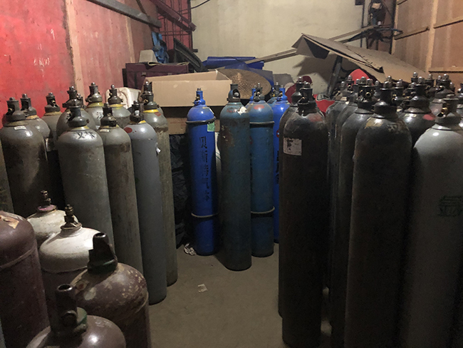 浙江杭州市案例:2021年3月8日上午,浙江省杭州市蕭山區(qū)應(yīng)急管理局執(zhí)法人員對(duì)某公司進(jìn)行執(zhí)法檢查。期間,執(zhí)法人員發(fā)現(xiàn)廠區(qū)內(nèi)一簡(jiǎn)易鋼棚搭設(shè)的倉(cāng)庫(kù),玻璃窗均被物體人為遮擋,檢查發(fā)現(xiàn)倉(cāng)庫(kù)內(nèi)堆放了大量危化品,包括滿瓶二氧化碳、氧氣、乙炔、混合氣體、氮?dú)獾?span style="margin-bottom: 37px;line-height: 37px;font-size: 21px">176個(gè)氣瓶。同時(shí),該倉(cāng)庫(kù)緊鄰公司員工宿舍樓搭設(shè),宿舍樓里還住著數(shù)十個(gè)工人,一旦發(fā)生爆炸,后果不堪設(shè)想。
